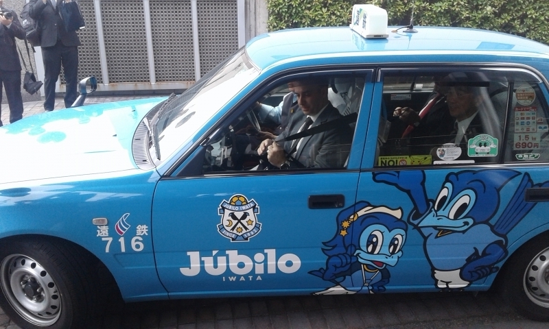 Distintivo do Jubilo Iwata está por toda a parte, até em táxis