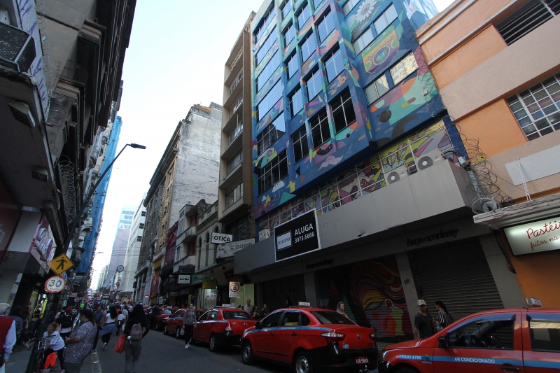 O prédio situado na rua Floriano Peixoto, que chama a atenção pelos grafites gigantes na fachada e na lateral de autoria do grupo Paxart, está com placa para alugar. O valor é de R$ 35 mil por toda a área com 730 metros quadrados, e para compra, o preço pedido é de R$ 5,5 milhões. A intenção é alugar para uma atividade e não diluir em diversas locações.