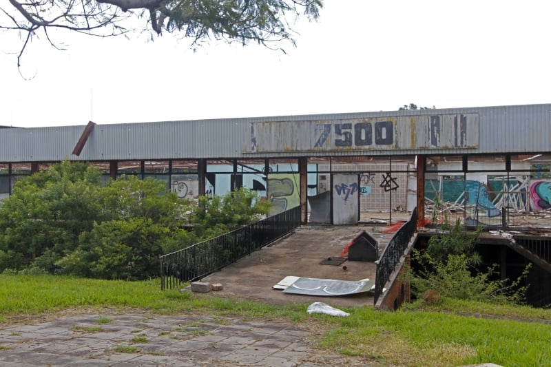 Parte da área ainda tem resquícios das antigas instalações de revendas de carros e motos que funcionaram na Protásio Alves