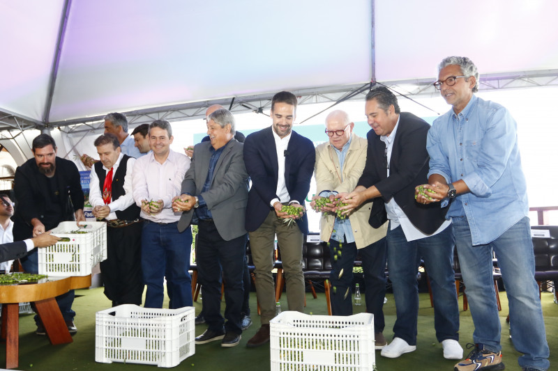Neste ano, a colheita simbólica em um olival montado junto ao Deck Sunset, palco da cerimônia de abertura realizada na propriedade da Olivas de Gramado, não pode ser realizado em função da forte chuva que caía na manhã do evento. A agenda - promovida pelo Ibraoliva e Seapi, em parceria com o Parque e a prefeitura de Gramado -, contou com a presença de outras autoridades.