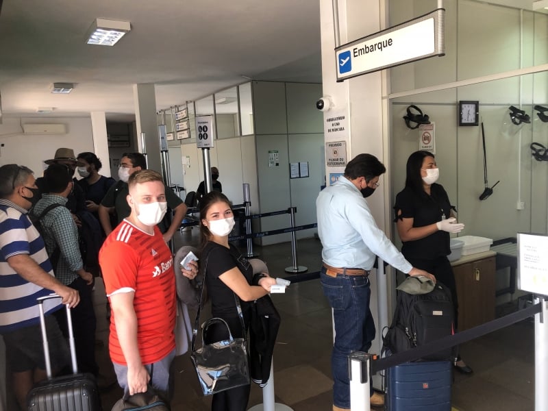 O terminal fica junto à Base Aérea e compartilha a pista da Força Aérea Brasileira (FAB). Foi o único local que a reportagem registrou monitoramento de temperatura, previsto em protocolos da pandemia, no acesso ao terminal, feito por guardas municipais.