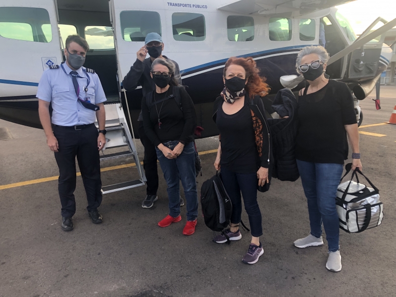 No desembarque, antes de ir para o terminal, o grupo fez questão de registrar em foto, ao lado do monomotor e com a tripulação, para guardar na memória. Antes de voltar à Capital, é preciso desembarcar as encomendas, enviadas por sites, que aportam mais rápido graças às ligações para o Interior.