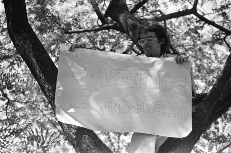 Protesto de estudantes em 1975 impediu corte de Tipuana no Centro de Porto Alegre. Foto: AGAPAN/DIVULGAÇÃO/JC
