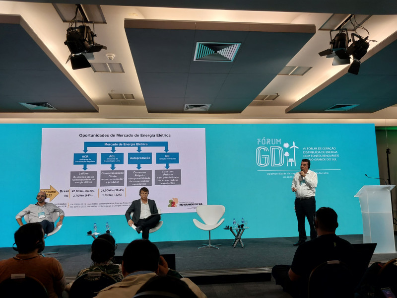 Os dados foram apresentados nesta sexta-feira (22) pelo assessor de energia da Secretaria Estadual do Meio Ambiente e Infraestrutura, Eberson Silveira, durante o Fórum de Geração Distribuída de Energia com Fontes Renováveis do RS (Fórum GD), realizado na Fiergs. Conforme o especialista, a potência instalada de todas as fontes no Rio Grande do Sul soma cerca de 11,1 mil MW, sendo a participação da hidreletricidade de 41,7%, da solar 22%, da eólica 16,5%, das termelétricas fósseis também 16,5% e da biomassa (matéria orgânica) 3,4%. Silveira informa que a geração fotovoltaica já representou investimentos na ordem de R$ 12 bilhões no Estado.