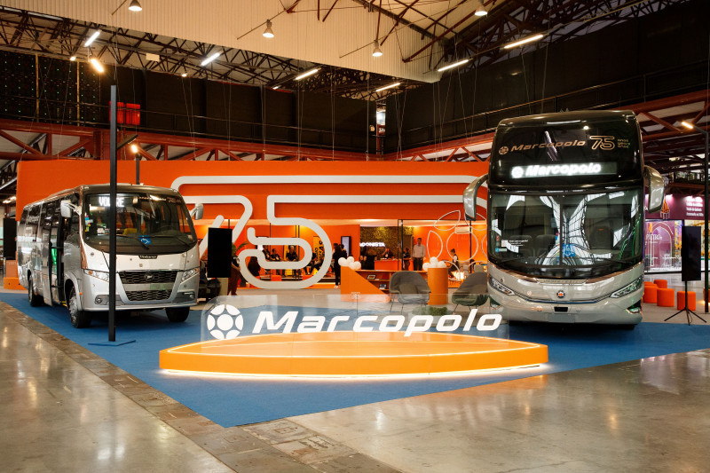 No estande da Marcopolo, são destacados alguns dos marcos históricos da companhia. Também estão expostos dois modelos de ônibus, G8 e Volare. O G8 apresentado é uma proposta conceito, em que a empresa expõe quase todas as configurações possíveis para um veículo de transporte rodoviário de passageiros. “Iniciamos as comemorações dos 75 anos da Marcopolo na Festa da Uva, pois, por mais que sejamos uma empresa que está dentre os grandes players mundiais, as origens estão em Caxias do Sul. Nesta edição do evento, destacamos os veículos produzidos pela Volare, marca focada na fabricação de micro-ônibus, que é líder no segmento. Conferimos ainda visibilidade a ônibus consagrados, como a família G8, responsável pelos modelos mais vendidos do Brasil e de grande aceitação externa”, afirmou o CEO André Armaganijan.