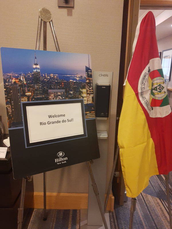 Consolidar o Rio Grande do Sul como polo de inovação e tecnologia e ampliar a inclusão digital dos alunos gaúchos e a gama de serviços digitais ofertados pelo serviço público. Com esse propósito a agenda desta quarta-feira (10) da comitiva gaúcha liderada pelo governador Eduardo Leite teve a inovação como foco. A programação começou com reunião do grupo com executivos da gigante de tecnologia Oracle baseados em Washington. O encontro ocorreu em uma sala do Hotel Hilton, em Nova York, e não pôde ser acompanhado pela imprensa. No entanto, a receptividade aos gaúchos chamou a atenção. Na porta do centro de convenções uma bandeira do Rio Grande do Sul acompanhava o cartaz de boas-vindas.