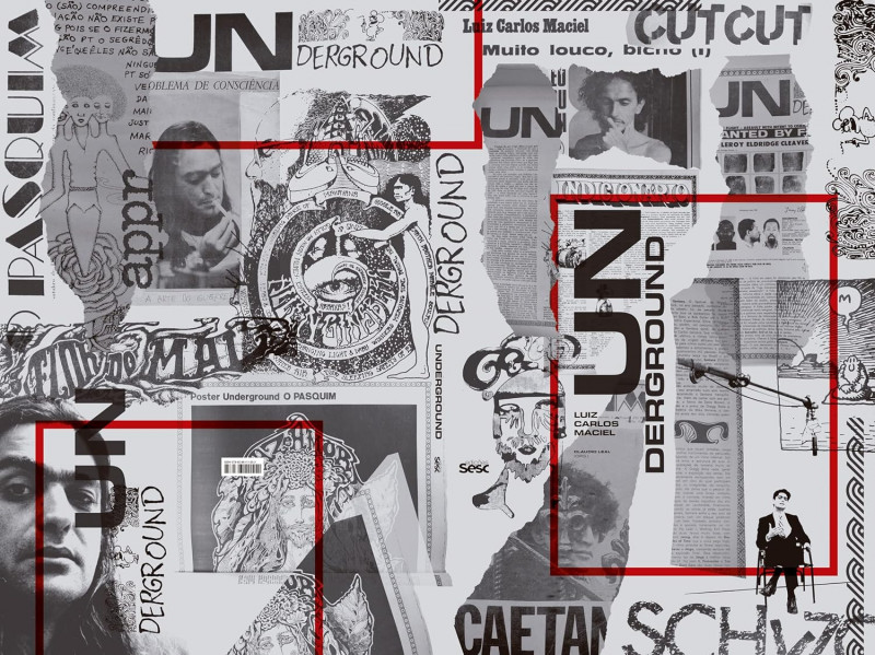 Arte completa da capa do livro Underground, organizado por Cláudio Leal; por meio de sua coluna no Pasquim, Luiz Carlos Maciel difundiu o conceito da contracultura em todo o País