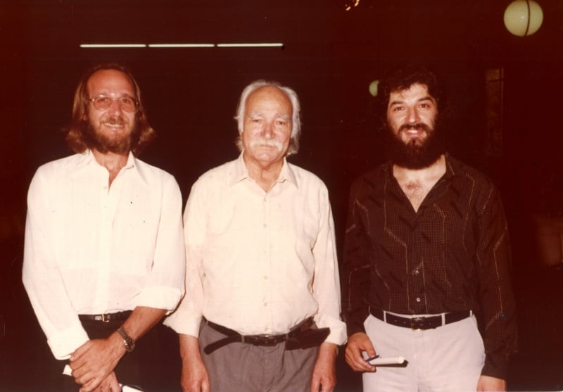 Músico José Prediger (à esq.), Albuquerque e Borges-Cunha, em 1982, na formatura em Música na Ufrgs