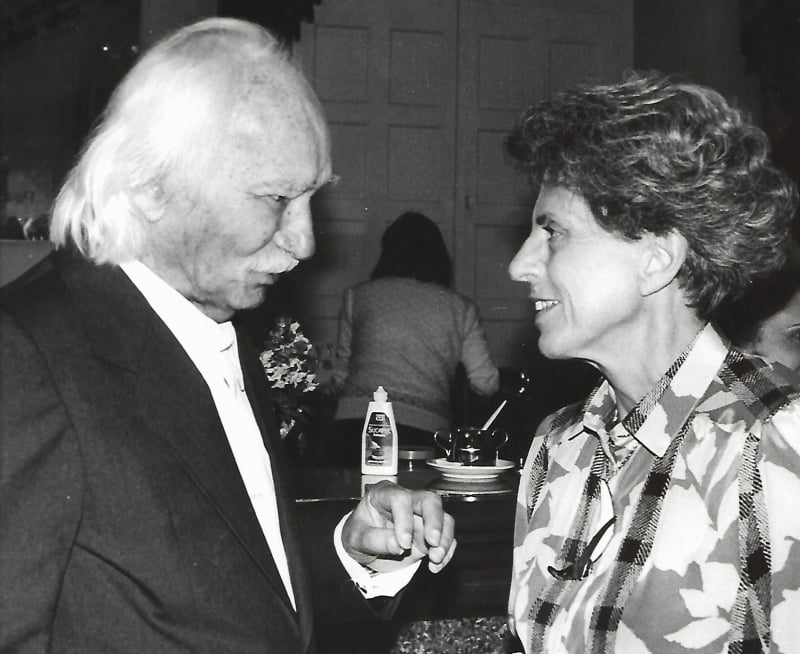 Armando em evento no Theatro São Pedro ao lado da então presidente da instituição, Eva Sopher. Foto: Alberto Albuquerque/Arquivo Pessoal