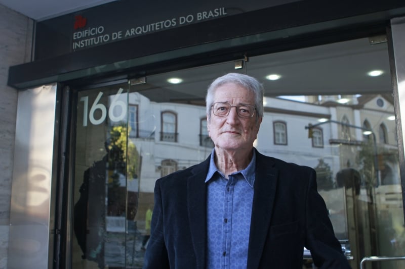 Dirceu Russi na frente do edifício da Annes Dias, onde funcionava o Espaço