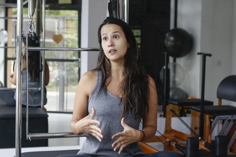 A fisioterapeuta Vanessa de Oliveira fala sobre benefícios do pilates de parede. Foto: Fernanda Feltes/JC
