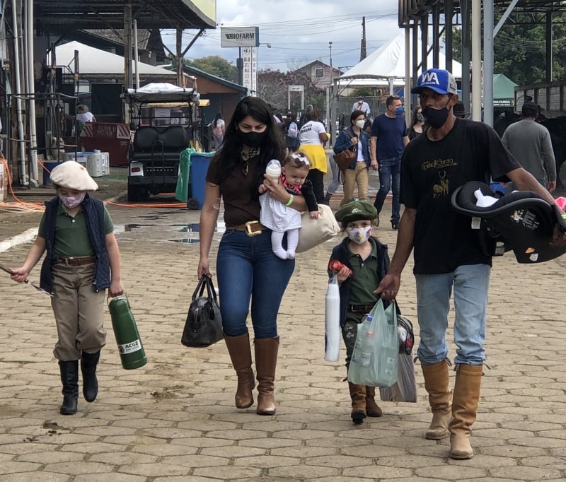 A decisão ocorreu logo após o tempo firmar. "Nossa expectativa é que não teria chuva", apostou Bonmann. "Viemos e ligados nos protocolos." Os dois meninos usavam máscara e estavam ansiosos para ver "boi, vaca e coelho", seus animais preferidos.