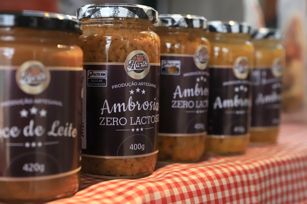 Outra novidade é a ambrosia sem lactose, desenvolvida pela produtora Rosa Hartmann, da agroindústria Morangos da Rosa, do município de Cristal, na zona Sul do Estado. O doce é feito com leite comum, a partir da receita tradicional, com o diferencial da adição da enzima lactase que tem a função de quebrar a lactose. A ambrosia pode ser consumida por quem tem algum tipo de intolerância ao açúcar do leite. “A ideia é oferecer um produto diferente, para driblar a concorrência e contemplar as pessoas que querem consumir o doce, mas têm restrição”, afirma. Rosa garante que o gosto é o mesmo da ambrosia produzida com leite normal. A produtora, que também comercializa geleias sem açúcar, conta que está preparando uma novidade: o doce de leite sem lactose desenvolvido nos mesmos moldes da ambrosia. “Temos uma nutricionista que orienta essas receitas especiais e faz toda a análise dos parâmetros dos nossos produtos”.