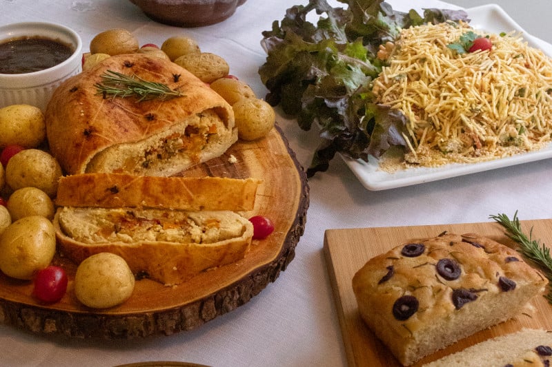 O Vê, empório e restaurante vegano que opera na avenida Lageado, nº 1265, em Porto Alegre, oferece opções para ceia de Natal sem o uso de insumos de origem animal, 100% plant based. A opção de miniceia contempla tender de grão de bico recheado, salpicão de carne de jaca e brigadeiro cremoso. O valor é R$ 239,00. Já as opções maiores, que servem três a quatro pessoas ou cinco a seis pessoas, custam R$ 359,00 e R$ 489,00, respectivamente. Os quitutes também podem ser encomendados separadamente. A data limite para encomendar a ceia vegana é 18 de dezembro. Os pedidos devem ser feitos pelo WhatsApp (51) 99728-7252.