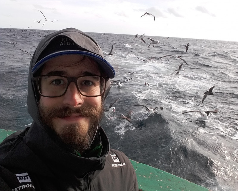 Gabriel Sampaio é doutorando pela Universidade Federal de Rio Grande (Furg), vinculado ao Laboratório de Tartarugas Marinhas e Aves Aquáticas e pesquisador associado ao Projeto Albatroz. Sampaio explica que a base de Rio Grande é bastante focada na pesca em si. O trabalho é feito em duas principais frentes. “Uma é o monitoramento do porto, que inclui conversas com pescadores sobre onde foi realizada a pescaria, em que posições foram feitos os lances de pesca e se ocorreram capturas não intencionais de aves.” O objetivo é reunir informações sobre a pescaria e a interação dela com as aves.