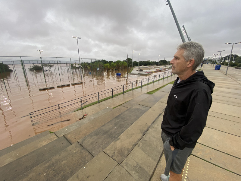 A Orla do Guaíba de Porto Alegre amanheceu totalmente debaixo d’água. Com isso, a maior pista de skate da América Latina virou uma piscina gigante. O avanço do nível foi rápido durante a noite, pois nesta quinta-feira (2) ainda não havia alagamento na área.