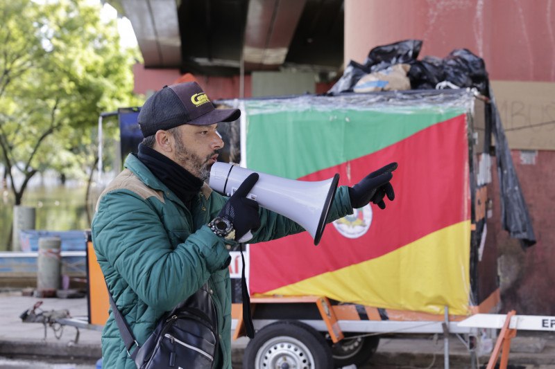 A área debaixo do viaduto é um ponto de acolhimento com suporte 24h. Ali há assistência médica, farmácia, banca logística, tenda pet, oficina e posto de gasolina para embarcações. “Todo trabalho é feito por civis, não temos auxílio do Estado. Mesmo assim não registramos nenhum acidente de trabalho e nenhum óbito”, relata Ximango.
