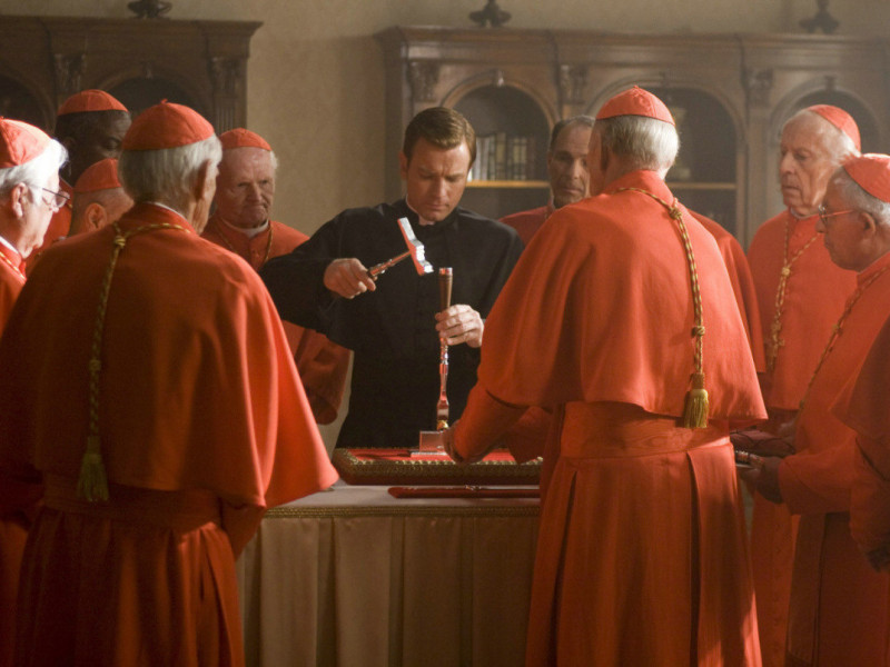 Embora não trate diretamente do conclave, a obra ficcional, que é baseada no livro homônimo de Dan Brown, explora alguns dos principais enigmas da Igreja Católica. Nela, o professor universitário Robert Langdon (Tom Hanks) é chamado para o Vaticano para investigar o desaparecimento de quatro cardeais. No entanto, desvendar o mistério se torna um desafio devido à resistência dos próprios clérigos.