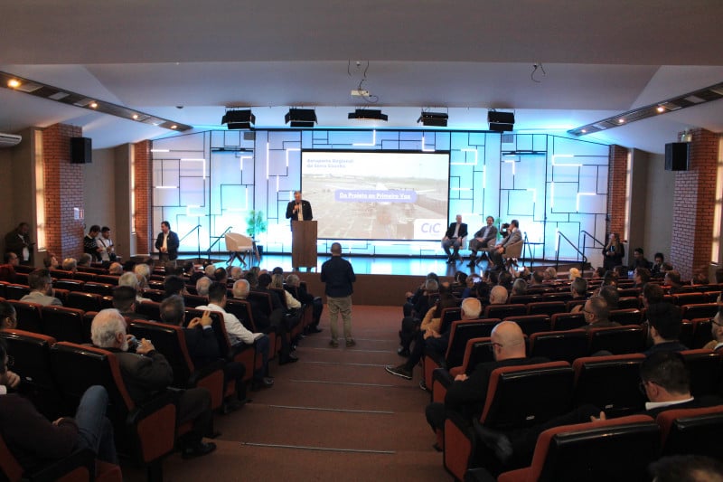Um encontro promovido pela Câmara de Indústria, Comércio e Serviços de Caxias do Sul (CIC Caxias), nesta sexta-feira (29) tratou, dentre outras demandas, do projeto do novo Aeroporto Regional da Serra Gaúcha. Sob o tema "Do projeto ao primeiro voo", o evento reuniu lideranças importantes da política e empresariais para debater os avanços e próximos passos desse empreendimento estratégico para a infraestrutura do Rio Grande do Sul, cuja expectativa é de ser concluído em 2026.
