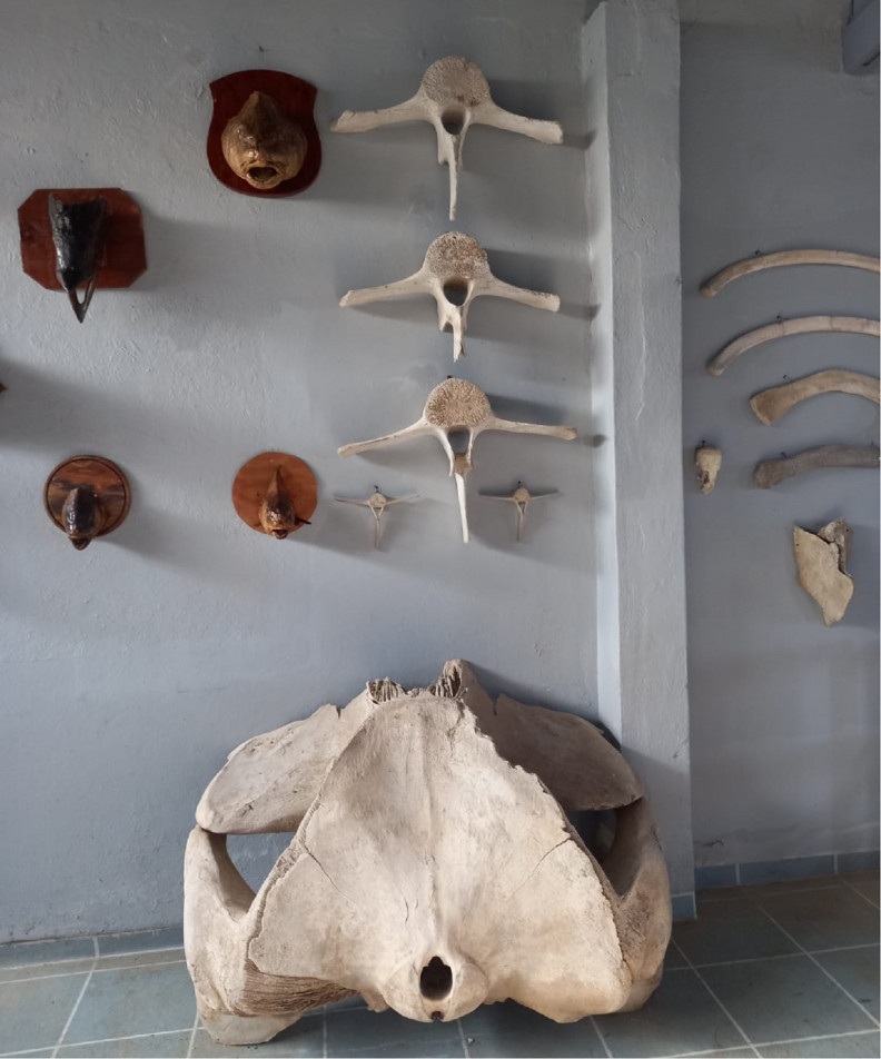 Museu na plataforma mantém ossos, esqueletos e cabeças de baleia e peixes
