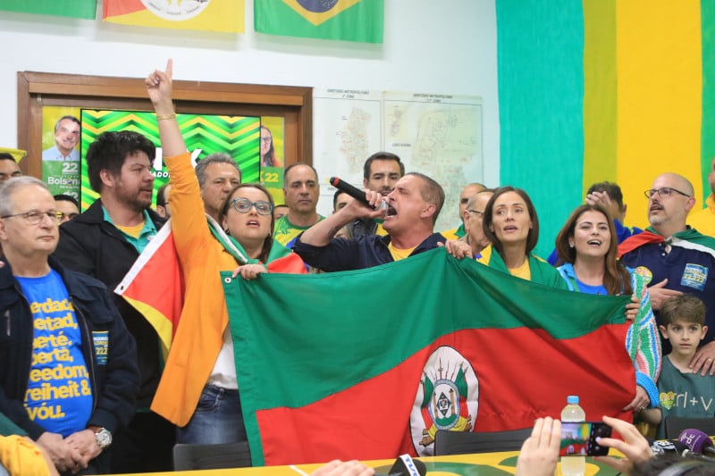 Vários apoiadores, com camisetas verde-amarelas, com o número 22 nas costas e os dizeres: "Deus, família, pátria, liberdade", ouviram o discurso de Onyx. Ele também estava acompanhado da sua vice, Claudia Jardim (PL), pela esposa Denise Lorenzoni e pelo filho Rodrigo Lorenzoni (PL), deputado estadual eleito. Quando mais de 80% das urnas já estavam apuradas no Rio Grande do Sul, militantes do PL passaram a prestar mais atenção na disputa pelo segundo lugar e "torcendo" pelo petista Edegar Pretto, considerado um candidato mais fácil de ser batido do que Leite (a diferença entre os dois foi menos do que 2,5 mil votos).