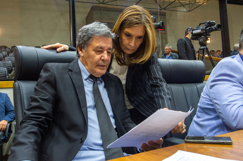 Cassiá Carpes e Mônica Leal estudam pauta durante sessão do Legislativo