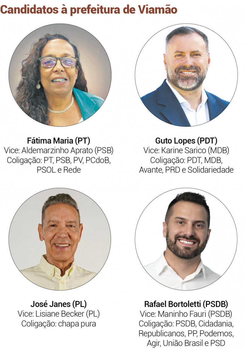 Após as convenções partidárias, foram confirmadas as candidaturas de quatro chapas à prefeitura de Viamão: três em coligações partidárias e uma candidatura isolada da chapa pura. Todas as siglas já submeteram os nomes escolhidos ao crivo da Justiça Eleitoral, mas a validação das candidaturas ainda não ocorreu. A cidade é o nono maior colégio eleitoral do Rio Grande do Sul, com 165.504 eleitores.