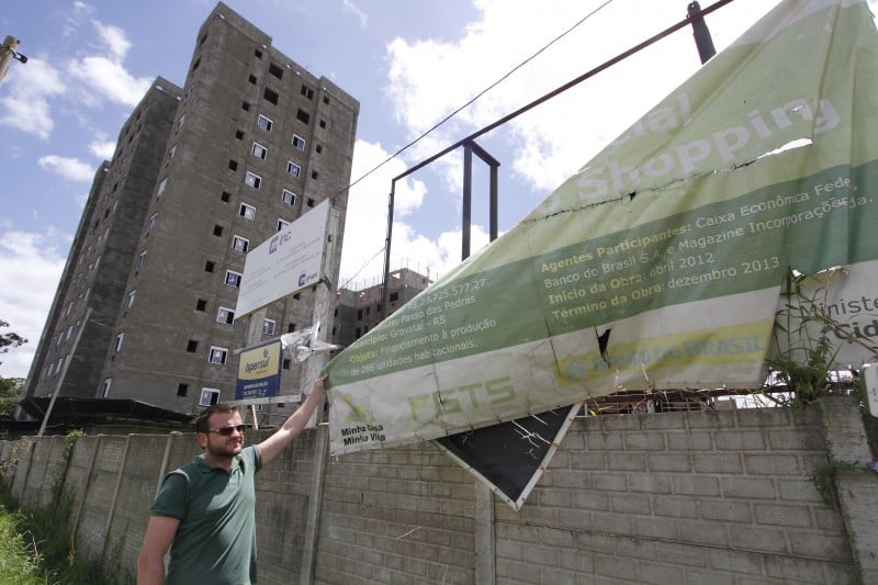 Wilkens, que comprou imóvel, ergue placa caída onde aparece o prazo de entrega em dezembro de 2013