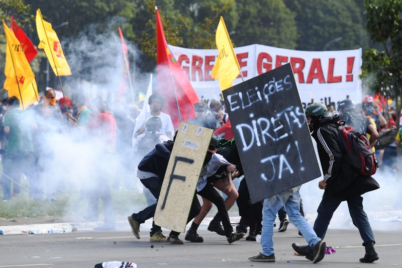 Também foram depredados paradas de ônibus, placas de trânsito, orelhões, holofotes que iluminam os letreiros dos ministérios e até banheiros químicos que haviam sido instalados para a manifestação.