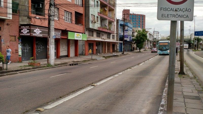 Imagem do comércio fechado durante o feriadão, certo? Nada disso. É a avenida Assis Brasil na segunda-feira à tarde. Leitor conta que caminhou por meia hora pelos dois lados da avenida, no trecho a partir do entroncamento com a Benjamin Constant, e a cena era esta. O comércio de rua, outrora tão presente em todos os segmentos, agora mostra essa tristeza.