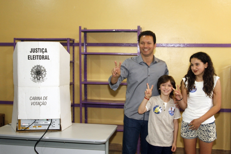 Na cabine, a votação levou quatro segundos de votação até dar o barulho da confirmação do voto. Depois o tucano fez o sinal com a mão de V de vitória, gesto que é de praxe candidatos fazerem. "Estou muito feliz, hoje é dia de festa da democracia, todos têm tempo para pensar e decidir o futuro dos próximos quatro anos de Porto Alegre", citou Marchezan Júnior.