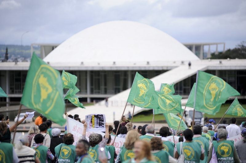 Uma manifestação, organizada pela Confederação Brasileira dos Aposentados, Pensionistas e Idosos e pelo Movimento dos Servidores Públicos Aposentados e Pensionistas, levou cerca de 300 pessoas a protestarem no Senado contra a Proposta de Emenda à Constituição 287/2016, que trata da reforma da Previdência. O ato ocorreu na última segunda-feira (13). A proposta está em tramitação na Câmara dos Deputados e pode ser votada ainda no primeiro semestre. Os aposentados se posicionam contra a idade mínima de 65 anos para a aposentaria e o tempo de contribuição de 49 anos para conseguir o valor integral do benefício. Outra reivindicação é que a reforma considere as diferenças regionais e entre os trabalhadores das áreas rural e urbana.