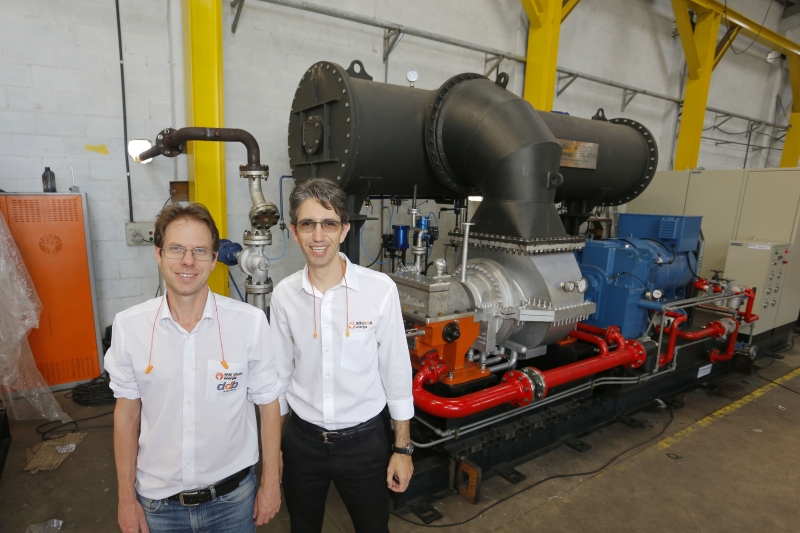 A Solidda Energia, de Curitiba, desenvolveu turbinas a vapor em tamanho reduzido para a geração de energia elétrica, usando biomassa como combustível - na foto, os sócios Silvio Dalmolin e Rodrigo Duarte. A nossa Celulose Riograndense faz processo similar que a torna autossuficiente em energia elétrica. No passado, a empresa Mernak, de Cachoeira, fabricava locomóveis que acionavam implementos agrícolas. E queimava casca de arroz, inclusive.