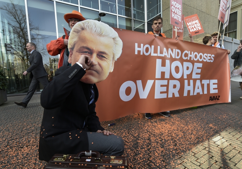 O Partido Popular Liberal e Democrata do primeiro-ministro Mark Rutte ganhou as eleições parlamentares na Holanda, que definirão o chefe do governo. Em frente ao Parlamento holandês, ativistas da organização civil Avaaz (foto) agradeceram os eleitores por não terem dado a vitória ao partido populista anti-imigração de Geert Wilders, que ficou em segundo lugar, com 20 assentos no Parlamento. Eles fizeram um protesto com faixas e cartazes com a foto do candidato derrotado e os dizeres "A Holanda escolheu a esperança em vez do ódio". A vitória de Rutte foi bem recebida pela União Europeia (UE), que manifestava preocupação com a possibilidade de uma vitória de Wilders, que propõe que a Holanda abandone o bloco e sua moeda comum, o euro.