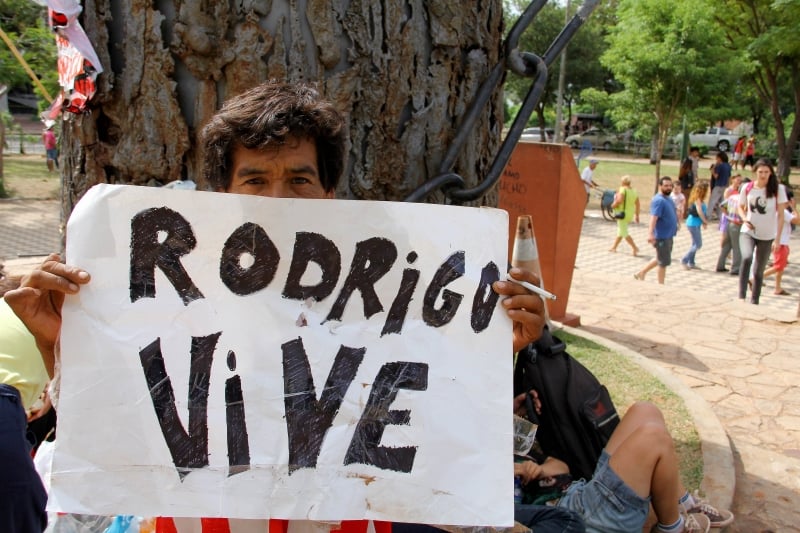 O clima nas ruas de Assunção, capital do Paraguai, segue tenso nesta segunda-feira (3), após dias de intensos protestos e a morte de um manifestante com um tiro da polícia. As manifestações começaram na última sexta-feira (31), quando centenas de pessoas incendiaram e saquearam partes do edifício do Congresso paraguaio contra uma manobra de senadores para aprovar mudanças na Constituição permitindo que o presidente Horacio Cartes, do Partido Colorado (conservador), busque um novo mandato. A manifestação terminou com mais de 30 feridos, 200 detidos e a morte de Rodrigo Quintana, 25, dirigente do Partido Liberal Radical Autêntico (PLRA), principal sigla de oposição no país. Pessoas montaram uma vigília na praça em frente ao Congresso, homenageando Rodrigo (foto) e portando bandeiras e cartazes com os dizeres "Não ao golpe" e "Defendamos a democracia". A polêmica emenda, que foi aprovada no Senado na sexta (31) sem a presença dos principais partidos da oposição, deveria ter sido votada na Câmara no sábado (1º), mas a votação foi adiada para esta terça-feira (4) devido aos temores de novos confrontos.