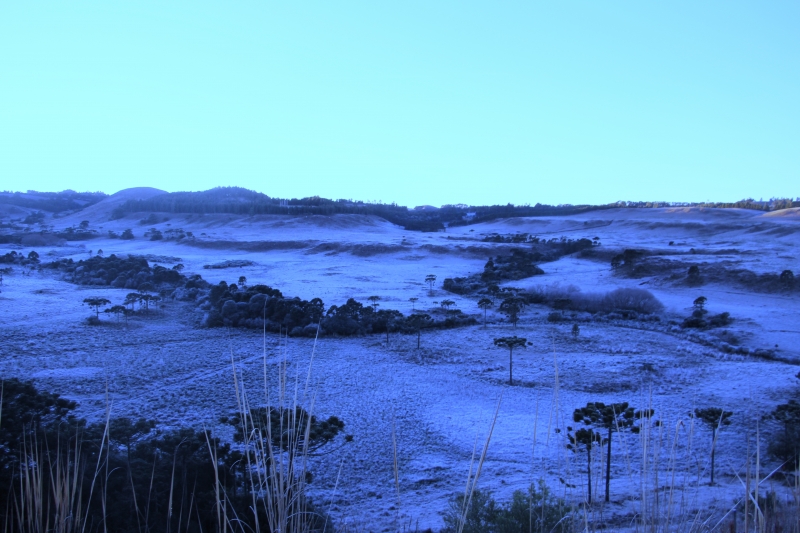 A massa de ar polar que atinge o Sul desde domingo se espalhou pelo País e, na madrugada desta quarta-feira (19), fez baixar ainda mais as temperaturas em todas as regiões. A cidade de São Joaquim, em Santa Catarina, registrou a mínima de -7,8ºC e uma forte geada cobriu a vegetação nos campos (foto). Também em Santa Catarina, a cidade de Bom Jardim da Serra registrou -8,8ºC, a temperatura mais baixa do ano no Brasil até agora. O vento gelado fez a sensação térmica despencar para -18ºC. Na Região Norte, em Rio Branco, capital do Acre, os termômetros chegaram a marcar 12ºC. Em São Paulo, a média ficou em torno dos 7,6ºC, a madrugada mais fria do ano. Entre a tarde terça e a madrugada de quarta, dois moradores de rua morreram na capital paulista e em Curitiba (PR). A principal suspeita é de que eles não resistiram ao frio.