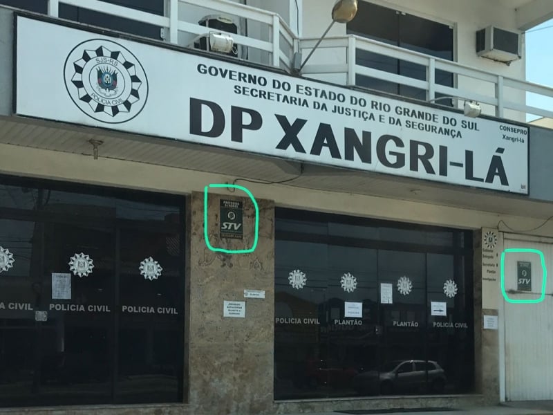 A foto não carece de muita explicação. A Delegacia de Polícia (DP) de Xangri-lá está em um belo prédio, mas quem faz a segurança é uma conhecida empresa de vigilância da Capital. Como o Crime S.A. está cada vez mais audacioso, nada mal a DP ter segurança em dobro.