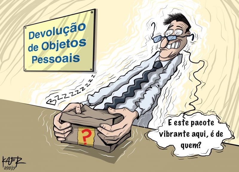 Na saída, na hora da devolução, a segurança fez compenetrada discrição: não revelou quem eram os felizes donos dos objetos, entre estes um vibrador de cor azul celeste, devidamente acondicionado numa caixa de bom tamanho.