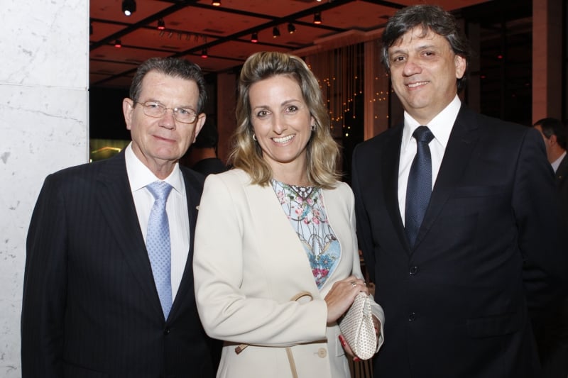 Rodrigo Costa Assis entre Marcos Blehm e Livia Brandão, no lançamento de seu livro Design da Iluminação, na Boutique dos Lustres