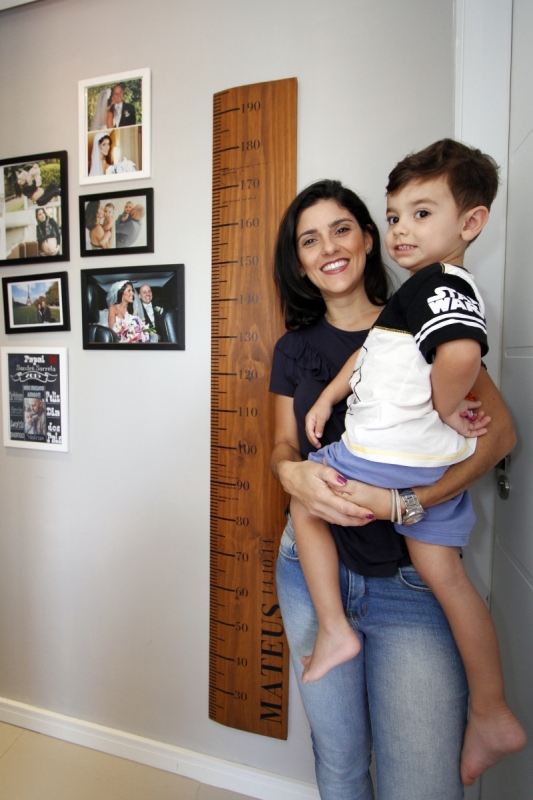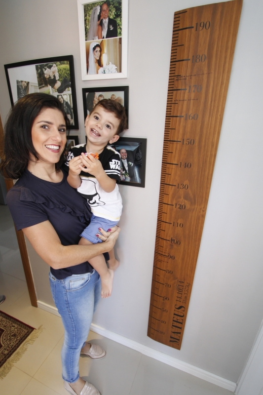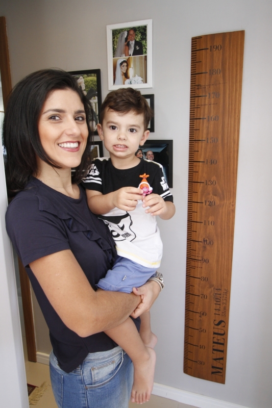O produto lançado pela arquiteta Renata Mendes, 33 anos, de Porto Alegre, substitui o hábito de marcar o crescimento das crianças nos marcos das portas. A Minha Régua de Madeira leva a inscrição do nome, data de nascimento, peso e altura dos pequenos. Serve, ainda, como peça decorativa. Uma barbearia da Capital, inclusive, já adquiriu o item para essa finalidade.