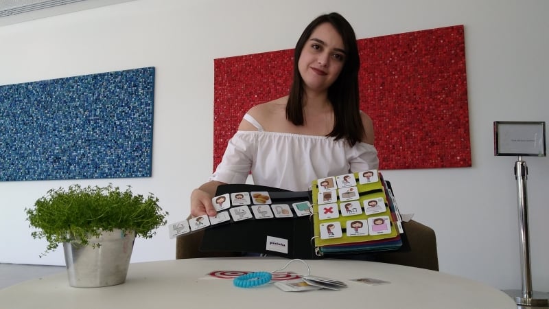"Quem convive consegue entender bem a criança. Esta comunicação facilita para usar fora, como na escola ou com outras pessoas", explica. A pasta é subdividida em páginas com pecinhas que contemplam ações, sentimentos, lugares, objetos, pessoas e alimentos. E os pais podem fazer pedidos específicos de acordo com as preferências da criança. Para o futuro, Sara espera poder aumentar o rol de produtos, "para ajudar ainda mais crianças".