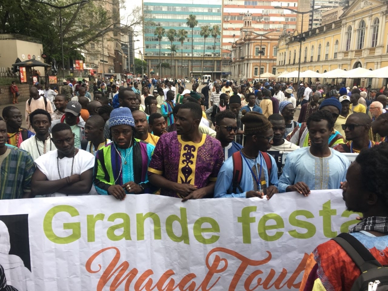 O Rio Grande do Sul tem uma comunidade cada vez maior de senegaleses, e, com isso, crescem as manifestações de cultura e crenças do povo do país africano. Nesta quarta-feira (8), os residentes da nacionalidade em Porto Alegre celebraram o Grande Magal de Touba, com caminhada, doações de sangue, trajes e comidas típicas e palestras. A data celebra a vida e os ensinamentos de Cheikh Ahmadou Bamba, considerado um dos maiores líderes do Senegal. A Associação dos Senegaleses de Porto Alegre estimou que 1,2 mil a 1,5 mil pessoas acompanhassem as ações. Uma caminhada (foto), entre o largo Glênio Peres, e a avenida Farrapos - onde ocorreu o almoço de confraternização, marcou a largada do dia de festejos. No trajeto, os simpáticos e espirituosos senegaleses distribuíram comidas típicas a quem passou pela área, reforçando um dos valores da comemoração. O povo considera como dia de graça, no qual ninguém deve passar fome nem ficar triste.