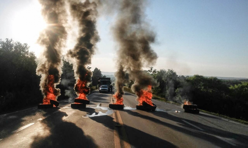 Em Piratini, na região Sul, um trecho da BR-293 também foi bloqueado no início da manhã. Os manifestantes queimaram pneus no km 62 da rodovia.