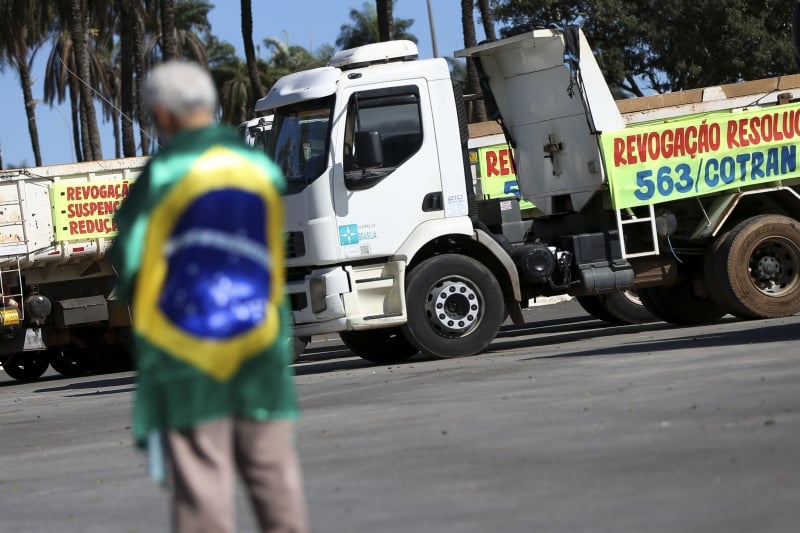 Caminhoneiros protestam em Brasília contra resolução do Contran