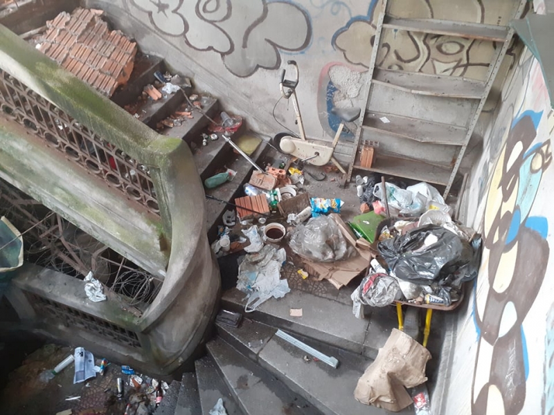 Não serviu para nada. Depois de algum tempo a tal escadaria foi fechada novamente devido aos efeitos indesejáveis. Imaginem a escadaria de noite e de madrugada. Quem, a não ser algum Super-herói enfiado na couraça do Robocop, subiria e desceria por ela? Mas não contavam com a esperteza da gurizada que anda pela área. Novamente a escadaria foi reaberta, o que explica o entulho e lixo que se observa.