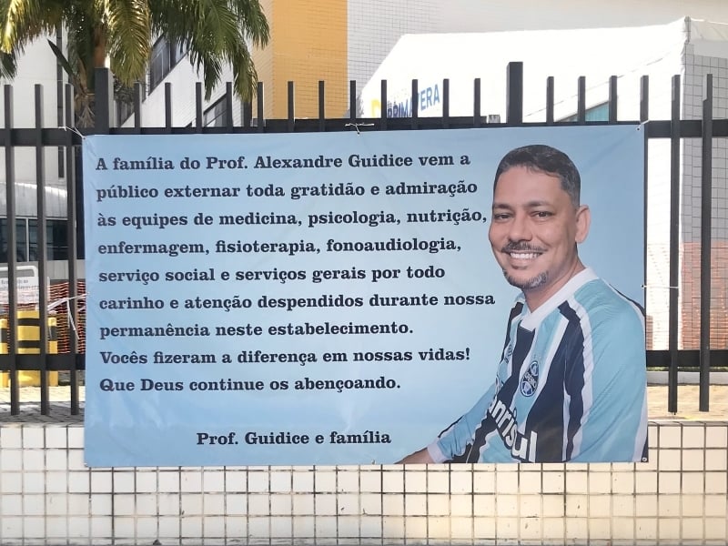 Não, não é no Rio Grande do Sul. O Hospital Primavera de Aracaju (SE) foi homenageado com o agradecimento da família do professor de Biologia Alexandre Guidice, sergipano e gremista, que se recuperou após ter Covid-19. O Grêmio tem torcida no Sergipe.