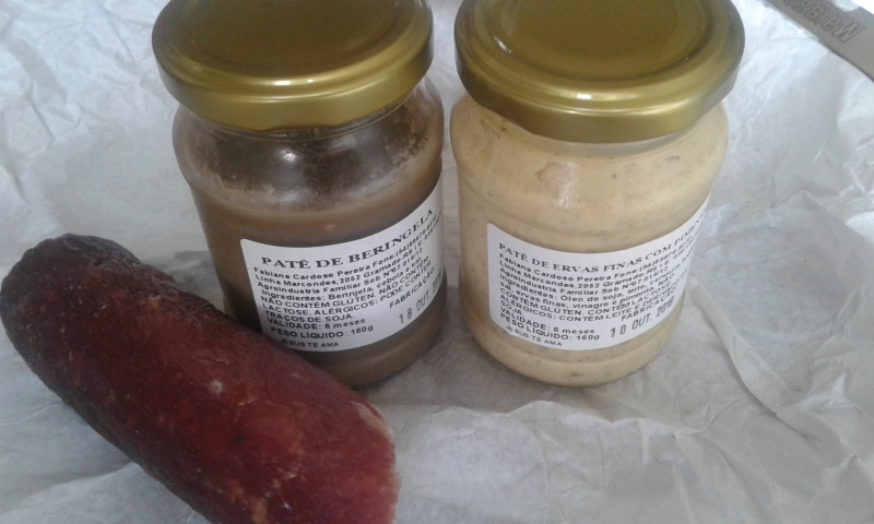 • Ao lado do salame na foto acima, um patê de berinjela e outro de ervas finas, dois dos muitos itens nas prateleiras, a bons preços.