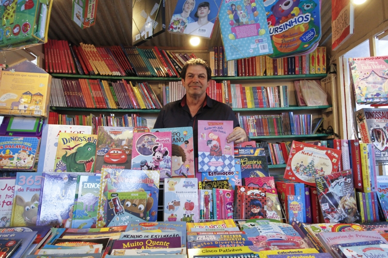 Sérgio Brandão traz suas obras e de outros autores infantis há 15 anos ao evento na Praça da Alfândega