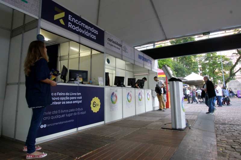 O serviço é uma das novidades deste ano na Praça da Alfândega. Um quiosque do serviço de encomendas rodoviárias já está funcionando no coração da feira. A estrutura foi montada pelas integrantes da Associação Gaúcha de Pequenas e Médias Empresas Transportadoras de Passageiros (AGPM). O quiosque fica ao lado do estande de informações.