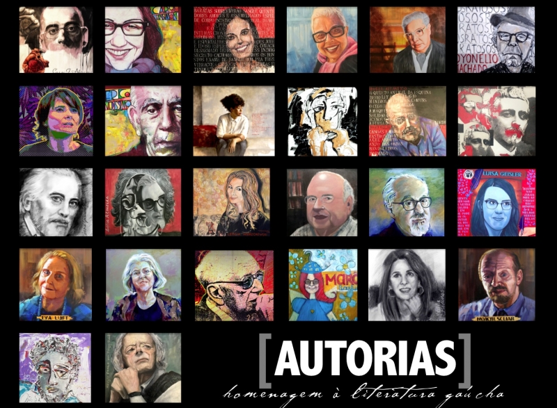 Abre nesta sexta-feira (1), na Galeria Escadaria, ao ar livre, no Viaduto da Borges de Medeiros, no Centro Histórico da Capital, a exposição Autorias. A mostra coletiva de 18 pintores é uma homenagem das artes visuais à literatura produzida no Estado. O grupo exibe retratos inéditos de 26 importantes autores gaúchos.